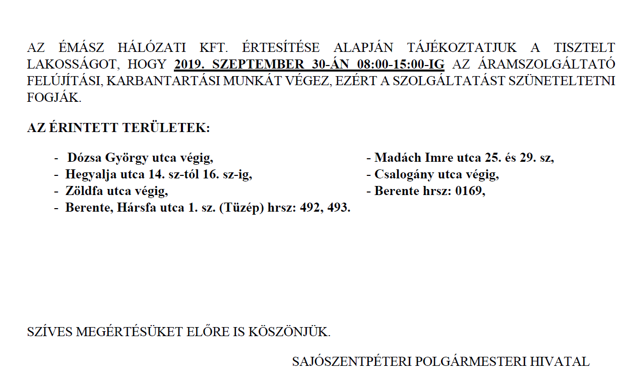 Lakossági tájékoztató!