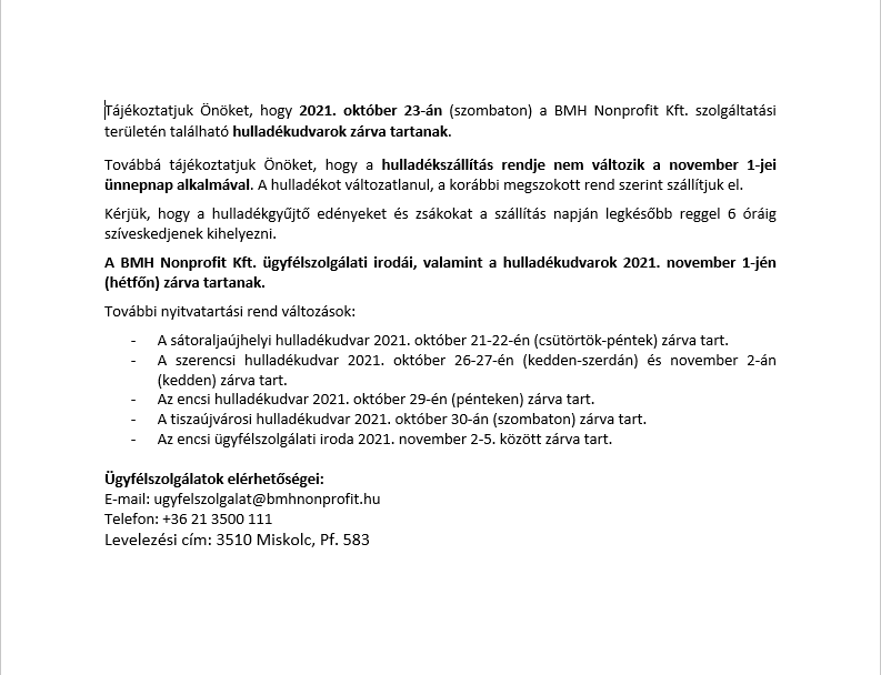 BMH Tájékoztató